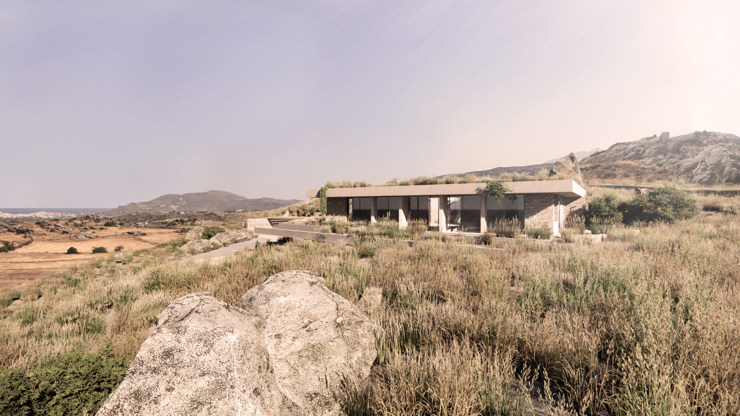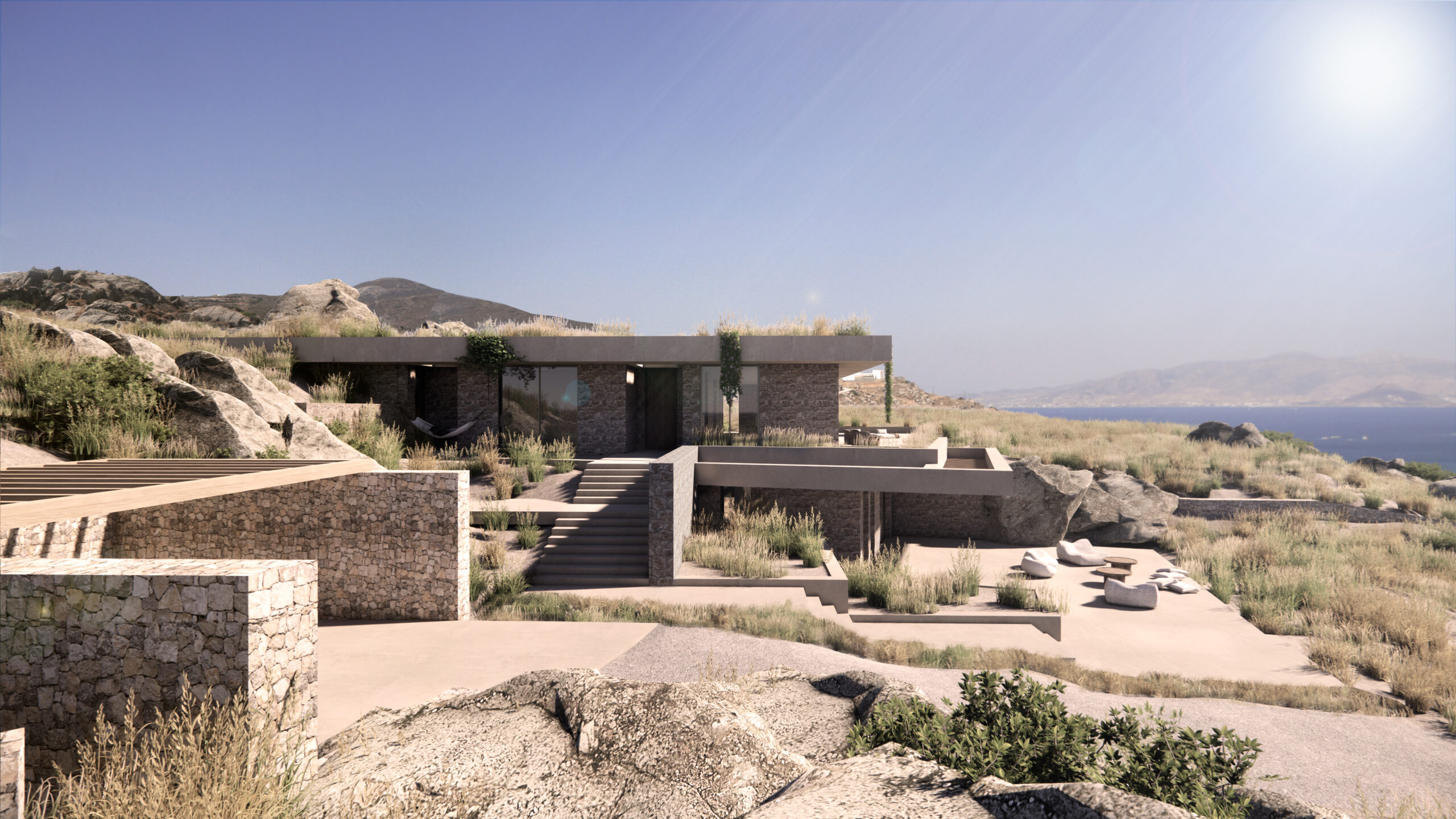 An architectural gesture that rests gently upon the rock, embracing it without altering its nature.Between geometry and landscape, light and horizon, the residence unfolds as a moment of quiet balance — a place where architecture and nature meet in harmony.