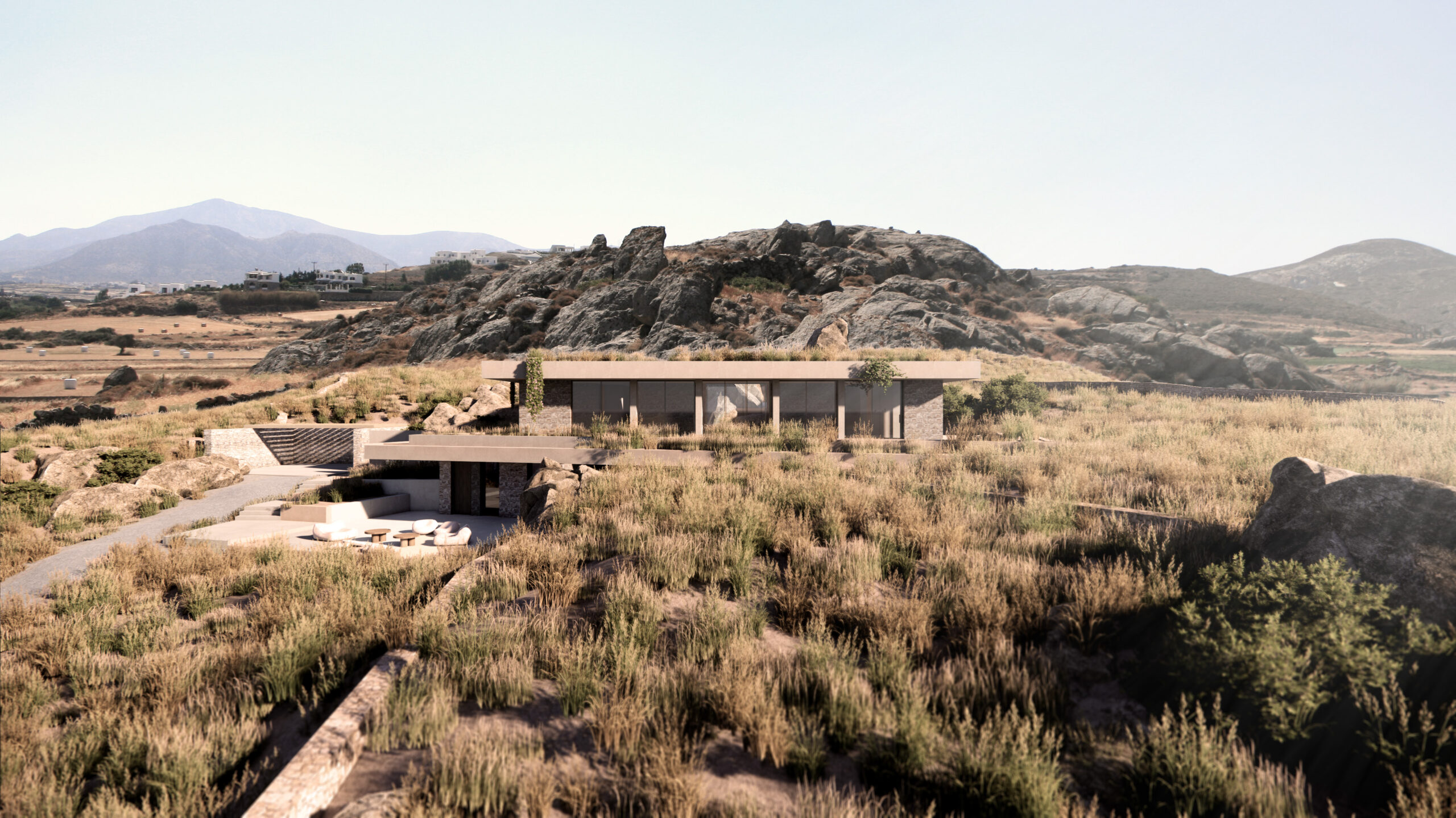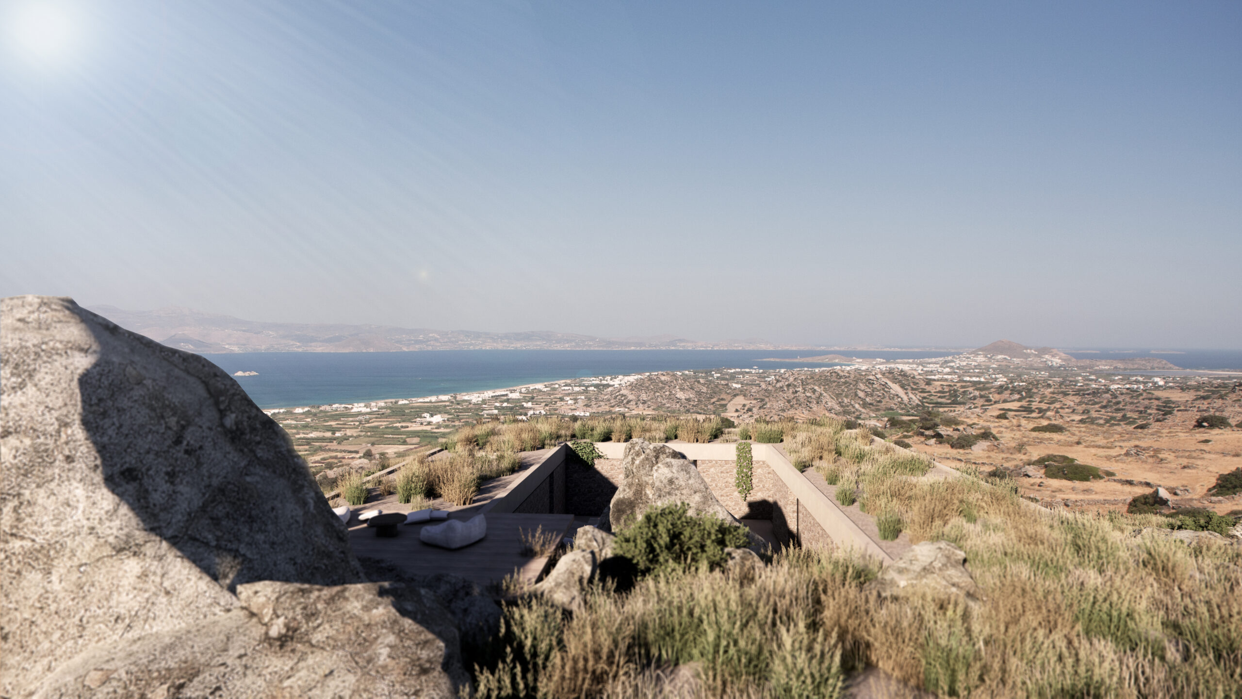The residence is situated on the hill of Plaka, within a landscape where light, stone, and horizon coexist in quiet harmony. The design emerges from the desire for an architecture that rests gently upon the rock, embracing it without altering its essence and revealing its strength through the simplicity of form.